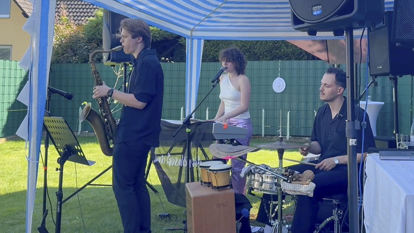 Wir spielen üblicherweise als Trio. Unsere Besetzung ist bewusst kompakt gehalten, damit wir flexibel bleiben: Wir passen Lautstärke, Setlänge und Songauswahl an jede Veranstaltung an – vom Sektempfang über Dinner-Begleitung bis zur anschließenden Party.